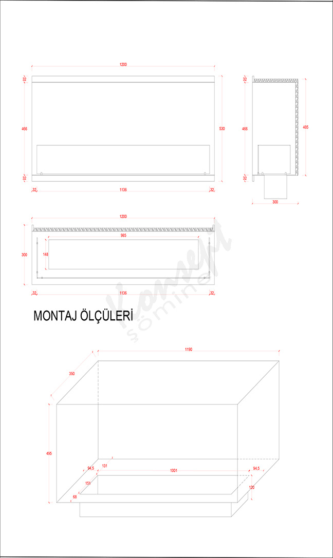 Installation Dimensions: 119 x 49.5 x 35 cm