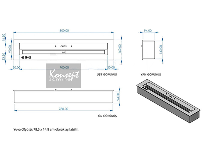 Montaj Ölçüsü: 78,5 x 14,8 cm