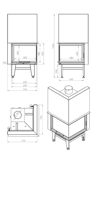 Eş hazneler; 2 yön açık şömineler olarak da bilinir. Şömine haznesi yapısı ile panoramik bir alev görseli sunar.