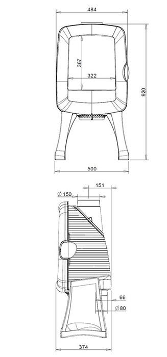 • Ölçüler: H 920 x L 500 x P 374 mm