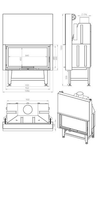 • Yana açılabilen kapak sayesinde şöminenizin camını kolayca temizleyebilirsiniz