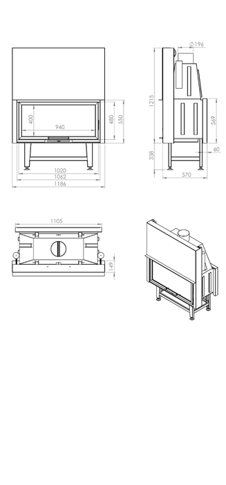 • Yana açılabilen kapak sayesinde şöminenizin camını kolayca temizleyebilirsiniz